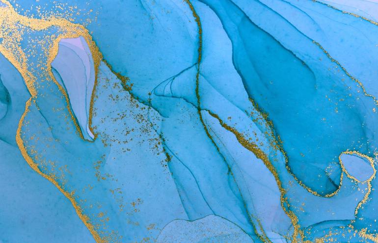 Alcohol ink blue and gold abstract background. Ocean style watercolor texture. Cool artistic abstract graphic design in a stylish color palette of blue and blush. Thoughtful gift for art lovers, teens, designers, and millennials. Marble abstract photo with foil. Hand painted photo. Marble Abstract.
