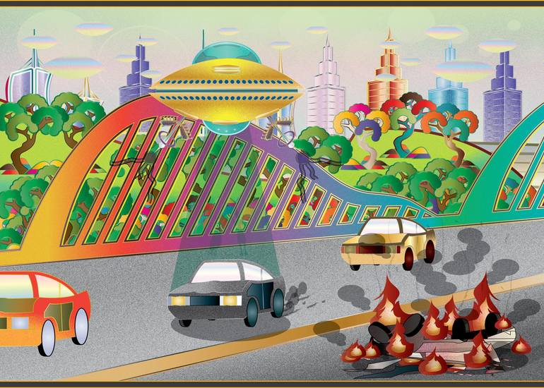 This colorful digital art is about intelligent life outside, a subject that gives long years in a row. Alien Invasion is a theme that makes your curiosity comes up. Bring to us and perform a lot of doubts. Inspired by fiction or by happening facts connections around the globe. I can provoke question...