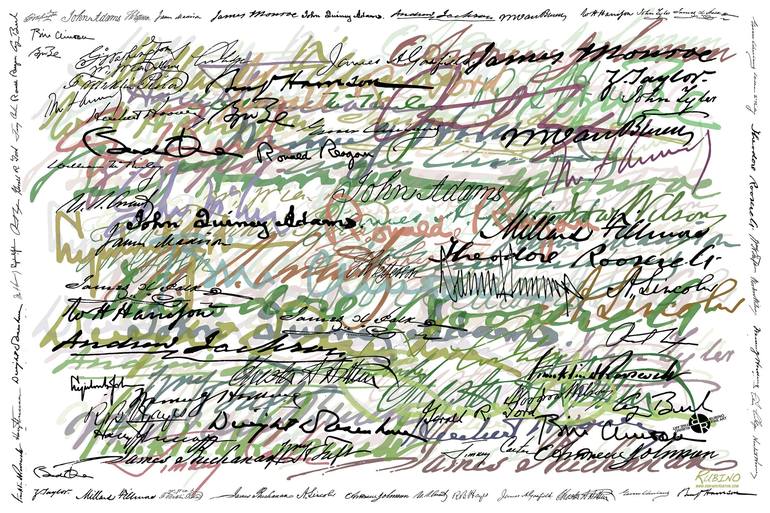 This is an abstract piece comprised of all the US Presidents actual signatures.