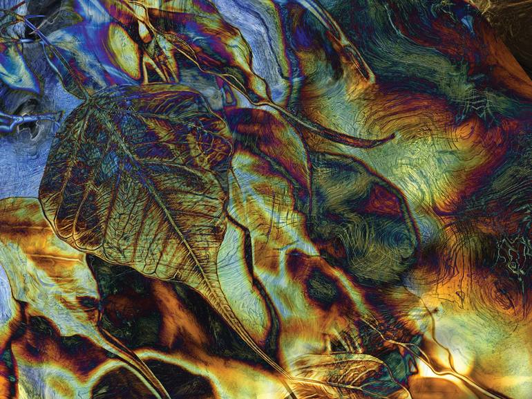 I have titled this work inspired by the famous song autumn leaves that I love, the composition resulted in blue and gold tones like an iridescent composition full of organic textures. Signed and numbered certificate of authenticity attached. Monumental artwork shows many impressive details and textu...