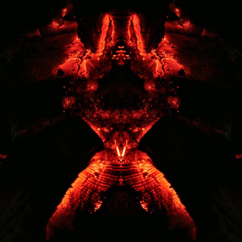 Baphomet is a digital artwork born from a spontaneous moment captured during a winter gathering in Leiden. Drawn by the intensity of an outdoor fire, the artist brought their phone close to the flames, carefully adjusting the exposure to capture the fierce play of light and shadow. By flipping the i...