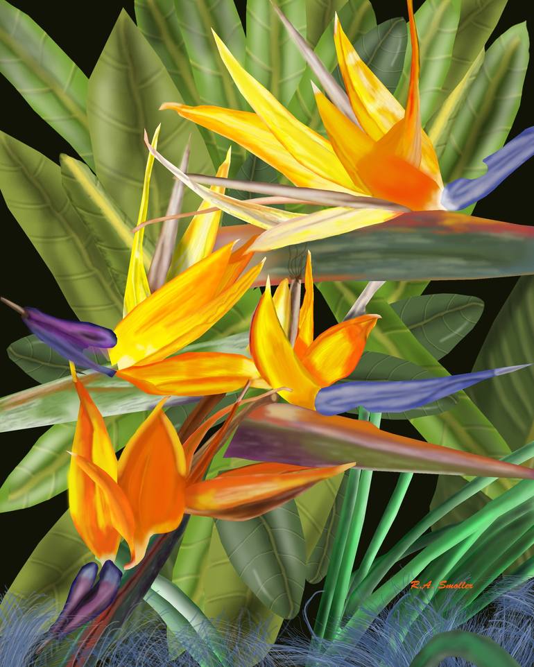This digital painting was created in honor of the grandmother of my step-niece. Birds of Paradise was her favorite flower. When she passed, I did this painting in her honor. This painting is on canvas and has all necessary hanging hardware. It also includes a certificate of authenticity guaranteeing...