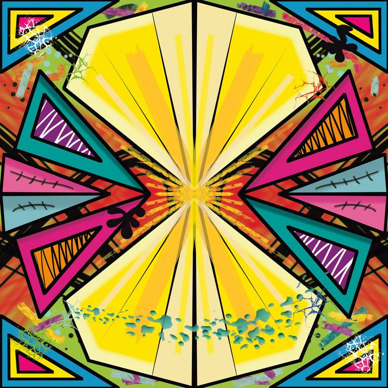 I was inspired comics and cartoons. Combination of abstraction and colors.