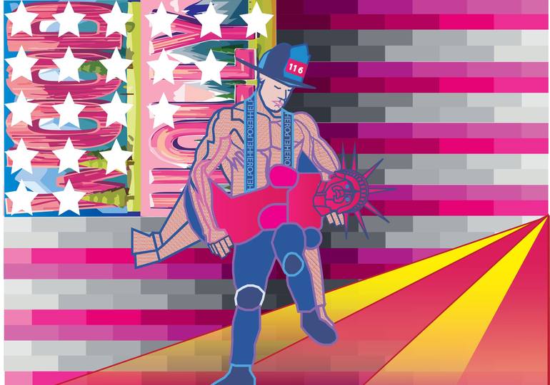 Inspired by the recent tragic events in Los Angeles due to the wildfires. This work has been reworked from the previous work Liberty's Escape by Brooklyn Bridge, 2012 Inspired by the pink paint the firefighters sprayed on the buildings and roads to protect them from the fires. This work depicts a f...