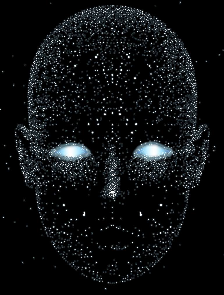 Bring the universe into your space with this striking minimalist design. A human head silhouette, composed of stardust-like dots, bridges the gap between humanity and the cosmos. Perfect for modern interiors, tech lovers, and fans of abstract art. Available on premium wall art