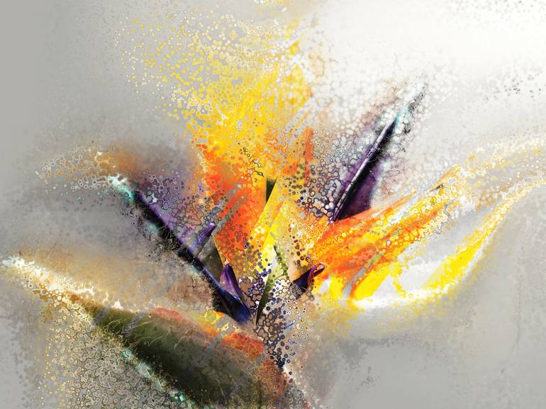 Thank you very much for visiting my store. Tiny particles emerging from floral compositions like vanishing on space abstract colorful compositions full of movement and textures. Signed and numbered certificate of authenticity attached. Monumental artwork shows many impressive details and textures th...