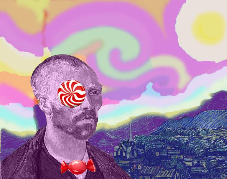 This digital artwork was created for The other avatar project. With respect to the great master, the author added a little humor to the self-portrait of the famous artist: candy sky and Sweets which is associated with the world-famous painting "Night" of the artist himself. Photo Poster on Glossy ...