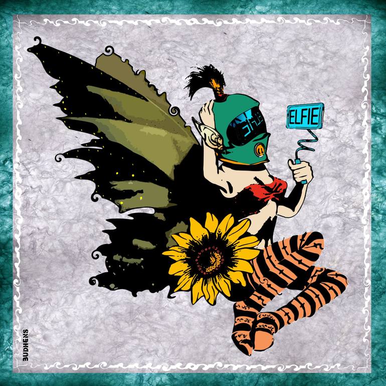 ELFIE taking a selfie stencil art digital art work to print