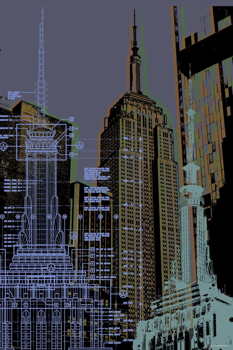 Empire State Building - NYC - Pop Art Warhol style Giclee Print. Collage - building's blueprints and recent pictures. Original: giclee on canvas hand signed, numbered and dated - 16" x 24" with 2" extra border - rolled / shipped in tube. Prints - photo paper, fine art paper, canvas acrylic, wo...