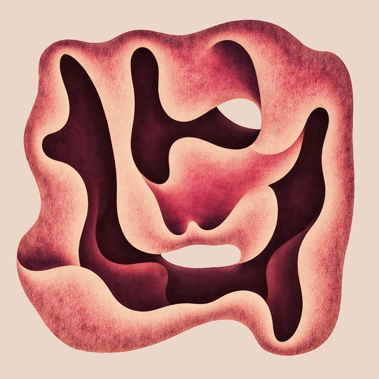This work explores themes of interiority, erosion, and identity through layered, flesh-like abstraction. The organic contours suggest a psychological or bodily map—like skin peeled back to reveal soft cavities and echoing shapes.
