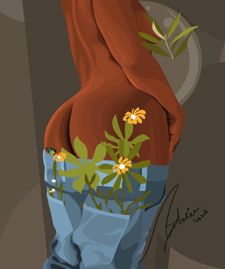 "Exquisite Unknown" portrays a captivating depiction of a lady adorned with an unforeseen and lively exhibition of blossoms in her trousers. This fascinating creation seizes the very essence of enigma, charm, and the unforeseen splendor discovered in the marvels of nature. The lady stands, radiati...