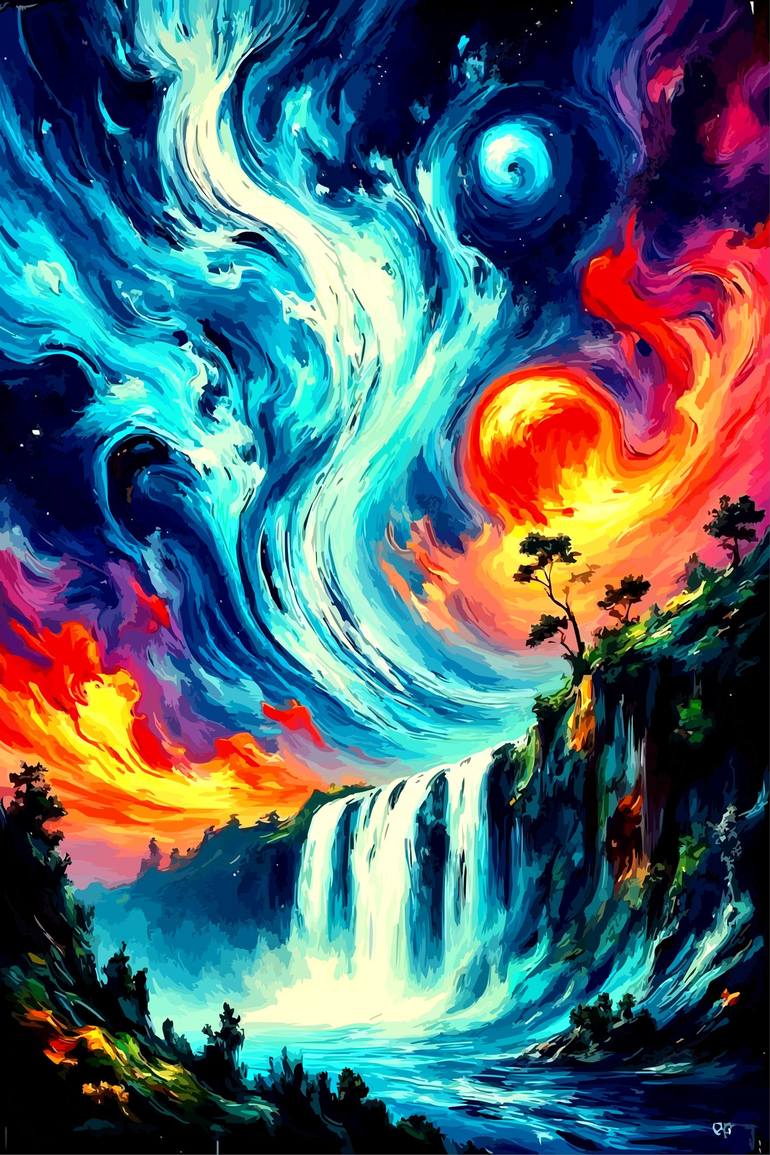 Title оf the Series: "Celestial Falls: A Night Fantasy". “Celestial Falls: A Night Fantasy” is a digital painting series that takes the viewer into a dreamlike world where waterfalls cascade under a surreal night sky of swirling light and color. The artist's goal was to merge the power of nature wit...
