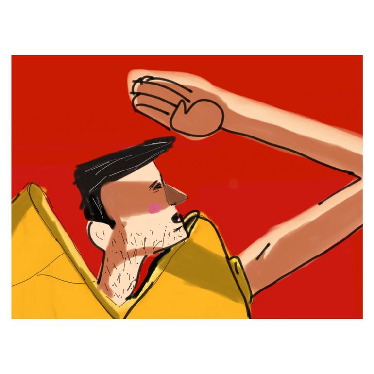 The work draws inspiration from bold graphic novels and animation, using minimal lines and strong colors to capture a moment of discovery or wonder. The striking red background and dynamic pose aim to evoke feelings of curiosity and anticipation. Digital illustration allows for clean lines and vibra...