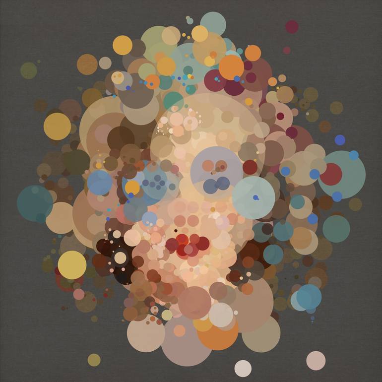 Pop Art, New Media, Digital Painting This particular artwork uses a brush 'loaded' with paint spots where the parameters (chosen by the artist) are altered to create different splatter effects. The spots are essentially symmetrical but painted in such a way as to give the impression of depth or per...