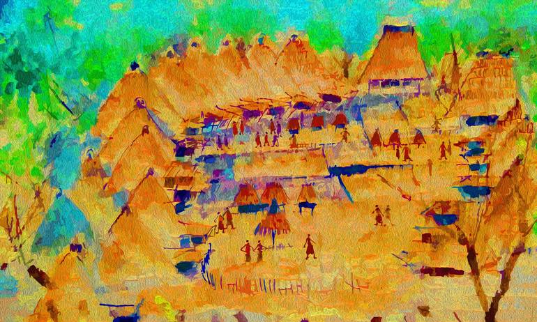 Digital painting from edits Watercolor painting on tissue paper. Image of the traditional village of Flores, East Nusa Tenggara, Indonesia. I love painting on unusual media, like tissue paper. Tissue paper has a high water absorption capacity, so it requires instinct and skill to control its water a...