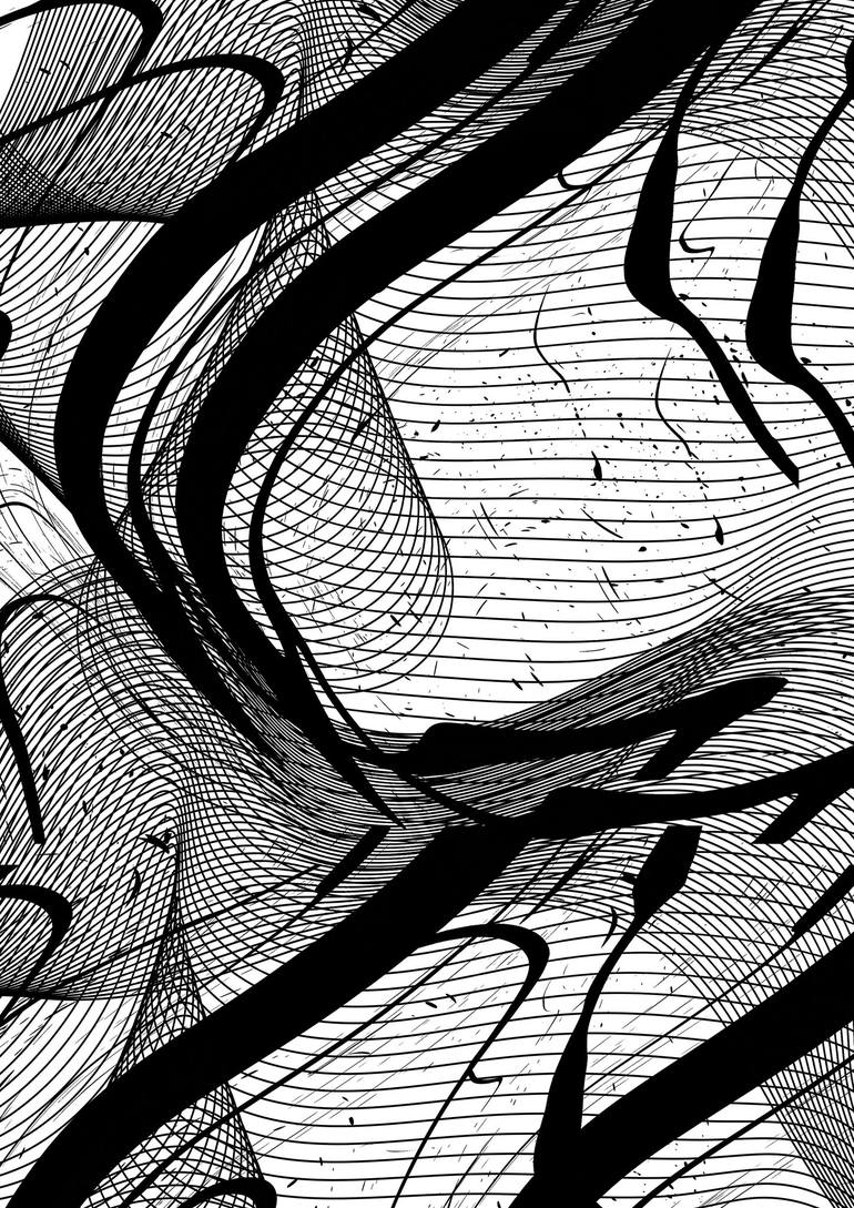 "Frequency" is a digital illustration featuring an intricate set of black lines against a white background. The lines intertwine in varying thicknesses, creating a dynamic and visually captivating contrast. The fluid forms and distinct paths of the lines evoke the concept of frequencies, suggesting ...