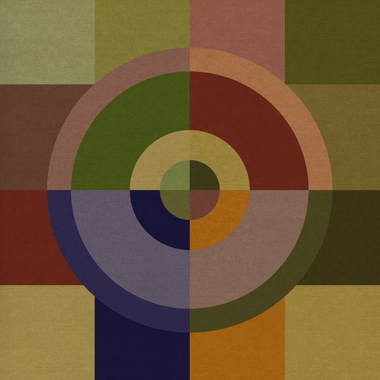 Pop Geometrics Series - Monoprints: Colour Revolutions Collection - Originally elements for the 'Orphism' inspired Artworks - This is a new series of 12 Monoprints - offset against a soft canvas textured background, the compositions have been created using the principles of 'colour theory' for adde...