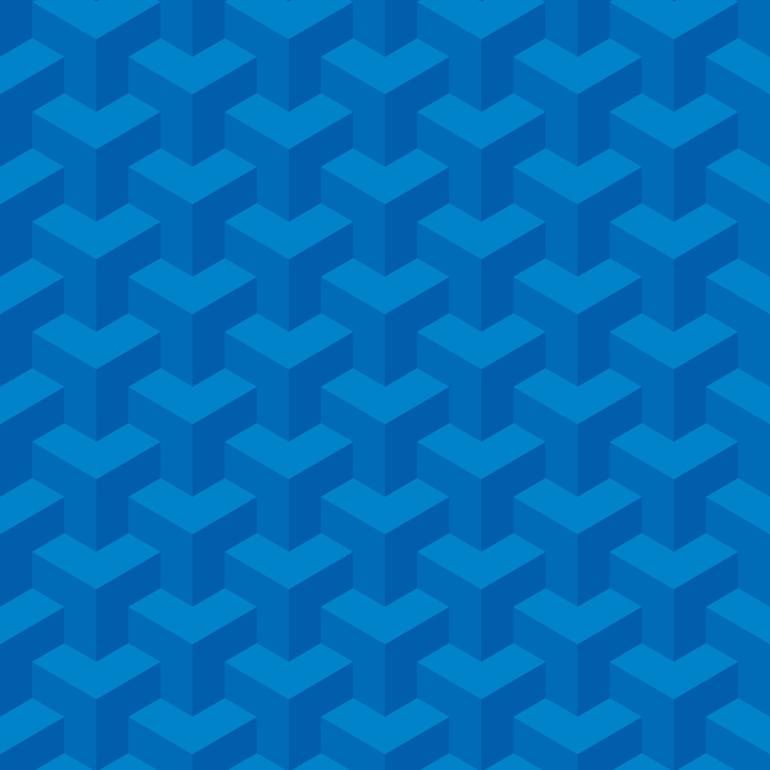 An eye-catching Escher inspired geometric pattern features interlocking blue shapes in a three-dimensional effect. The repeating design creates an optical illusion of depth and movement. Tags: geometric, pattern, 3d, vibrant, blue, optical illusion, escher, abstract, repetition, symmetrical, illusio...