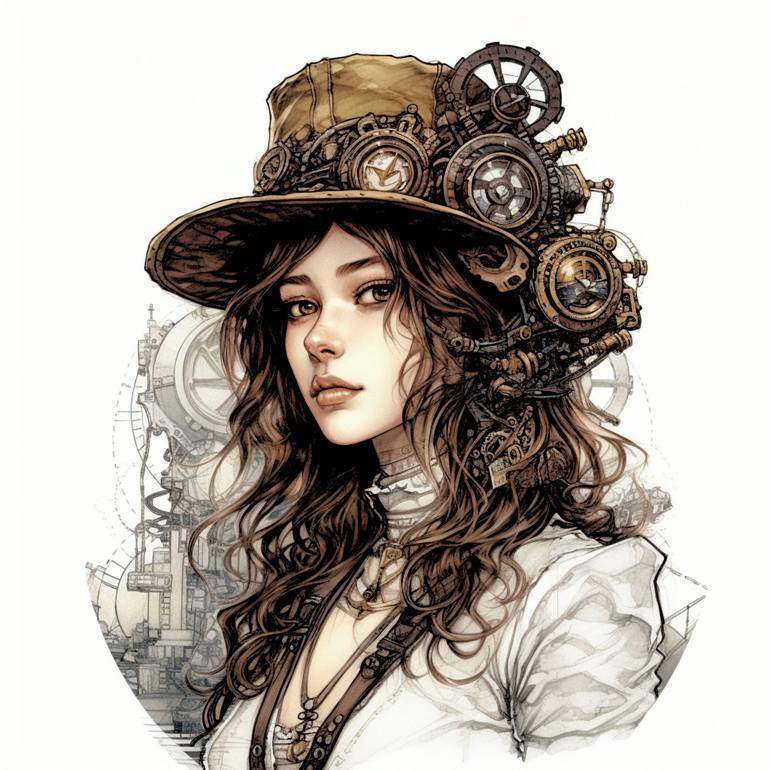 Baby girl portrait in Steampunk style. Probably this is the baby of her brave mother, who was going to fly on an airship around the world, a beautiful stylish portrait for your child who dreams of his own journey around the world.