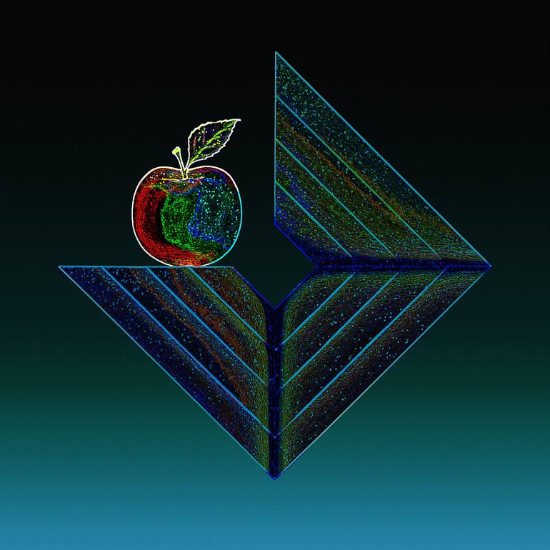 Glamour... Apple... is a conceptual fine digital painting artwork, it has been created using new Media techniques based on a painting of mine which I have manipulated digitally in combination with photography. A neon outline of an apple is positioned next to a geometrical shape that resemble...
