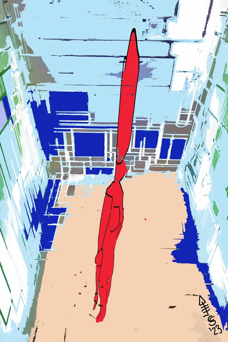 I expect art to be unusual, strange, and to raise more questions than it answers. Because that comes closest to life. +++ Decide how you want your picture to look in terms of size, material, and frame. This fantastic opportunity to purchase a print is available for almost every one of my pictures. That's why my digital works are mainly intended for SaatchiArt's “Print” option. +++ The creative process The process of creating a picture is just as exciting as the result. That's why I want to make it possible to see and „feel“ what the picture is made of, although digital material through reproduction undergoes changes. +++ The canvas is, for example, a classic support material for paint in painting. +++ In digital art these are computer monitors, for example. Making these pixels visible is just as interesting as the content that these pixels can make visible. +++ Spots and glitches make digital art alive and natural. +++ If I look at the Staatsgalerie Stuttgart at an original painting by Piet Mondrian, for example, I can see the traces of the creative process. Piet Mondrian's paintings were also often used as templates for packaging for everyday consumer products. There the motifs appear very clean. In contrast, seeing the traces of processing gives me the feeling that the picture is more alive. Not only is the finished picture there, but I can also sense the creative phase. That makes the picture much more exciting for me. That's why I also try to avoid sterile cleanliness in digital art, and show the revised areas as well, as they also hint at a lively process of creation. +++ Please consider ordering a print through saatchiart rather than from me. I also just go to a professional photo shop and have a print made on the best paper they offer.... +++ I have marked this picture on the front with one of my signatures or logos and the date of origin. +++ If you want to be the only person who owns the digital data and therefore the entire work of art then please contact saatchiart and we find a way.