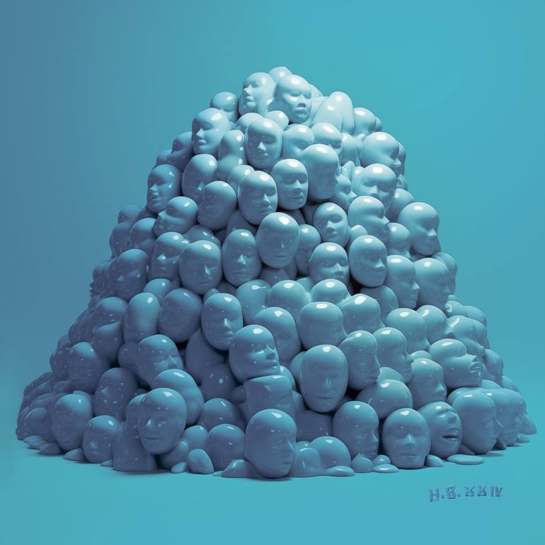 In "Glossy Empathocracy", the artist examines the profound dissonance between performative empathy and the moral inertia of global powers. This thought-provoking series presents hauntingly surreal compositions of hands and heads, stacked into gleaming, plastic-like formations. These glossy, hyper-re...