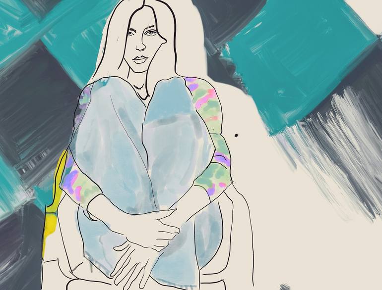 "Goddesses No.4" is a unique, modern figurative artwork created on an iPad. This fine art illustration of a woman is brought to life through digital drawing and ink techniques, then expertly printed in my studio using the giclée method. The result is a vibrant image with captivating shades of yellow...