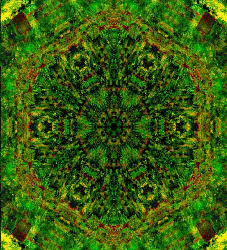 Mesmerizing and vibrant green fractal mandala art made with mixed media and digital algorithms that bring a completely unique dimension to your decor. The kaleidoscopic image in green induces a sense of calm and peace and brings on a meditative state of mind