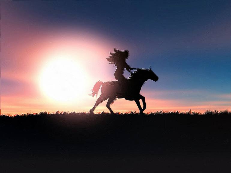 Horse Rider Sunset The West. Are you a horse fan who loves horses? These make perfect gift ideas for friends and family who can’t get enough equestrian art and modern art. A different, cool, gift for a man or woman who is a strong pony lover or, etching lover, and likes to make an independent state...
