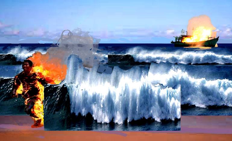 An explosion happened on the old ship and this sailor caught fire. He no longer wants to be a sailor and runs ashore on a lonely island in the Pacific Ocean. Even jumping into the water failed to extinguish his burning body.