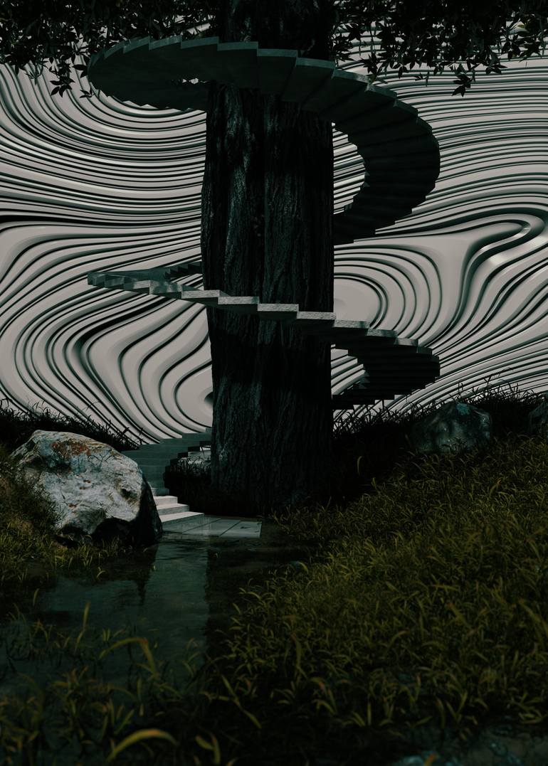 Its Upstairs 3D Surrealism Render Artwork UPSTRAITS TREE