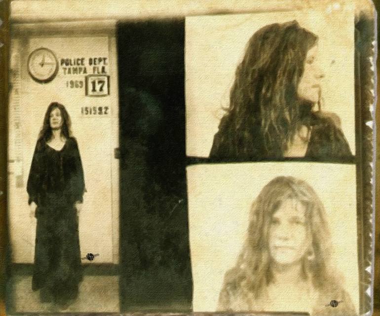 Pop art comes in many forms. I consider this one of them. You'll find here an ACTUAL, REAL mugshot of Janis Joplin. A mug shot of Janis Joplin from the Tampa, Florida Police Department. The black and white and sometimes color enhanced photograph shows three images of Joplin, the first is a full bo...