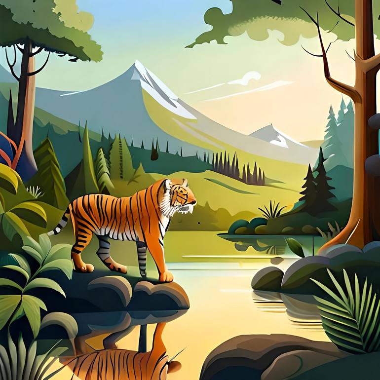 Jungle Tiger Wall Art Print, Framed Safari Animal Prints, Large Wildlife Art, Botanical Wall Art Prints, Modern Animal Art, Tropical Decor