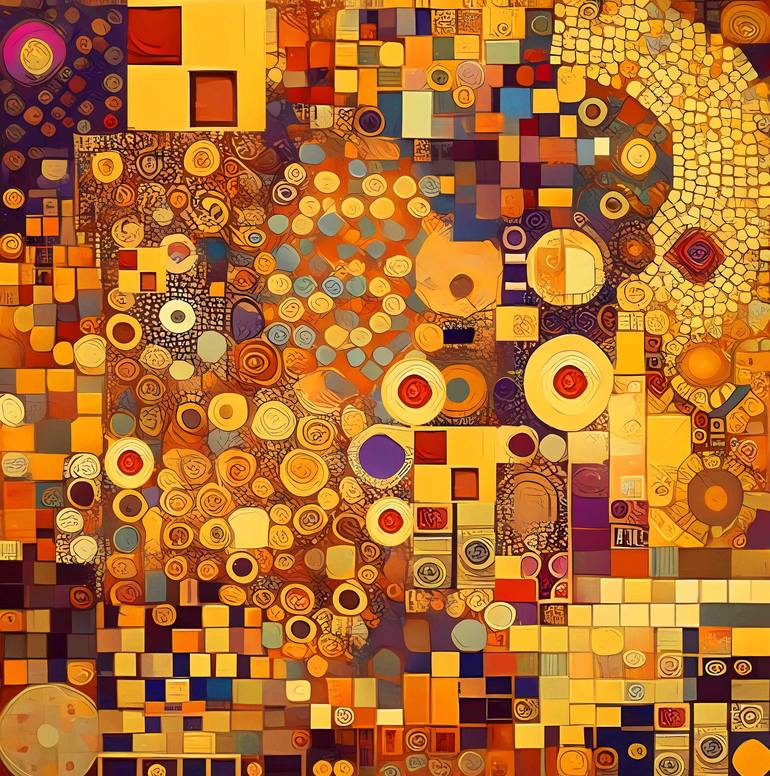 Klimt inspiration abstract - Large positive vibrant colors geometric abstract, bright wall art hanging. Unique artwork for the interior. A wonderful gift for fans of Gustav Klimt.
