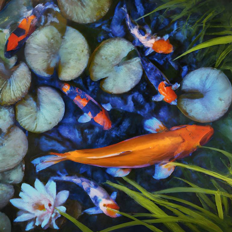 I've always loved a lot of elements from Asian culture. One item I found consistent in Asian art and aesthetics was koi fish. The calmness of a pond made alive with the bright and colorful koi fish is something I wanted to convey through this work of art. This is part of a 6 piece series.