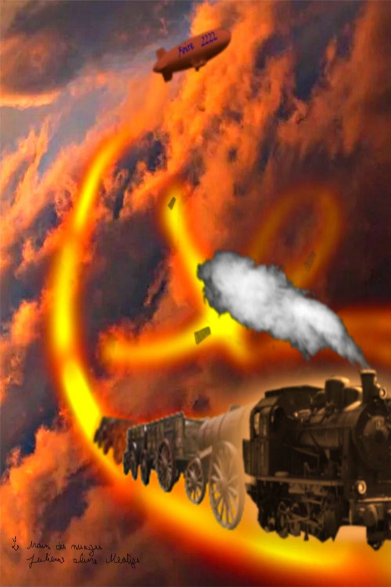 I like to invent dreams in a very fanciful and circulatory urbanization above the clouds with trains on roads of light, in the end, I feel a lot of lightness on this painting that I have created. J'aime inventer du rêve dans une urbanisation très fantaisiste et circulatoire au-dessus des nuages ave...