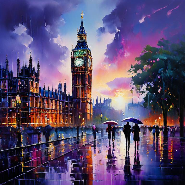 Experience the timeless allure of London through this captivating digital painting, where the iconic Eiffel Tower stands as a beacon of elegance amidst the city's romantic charm. As the sun sets over the horizon , casting a warm glow upon the historic streets and picturesque rooftops, the iconic Big...