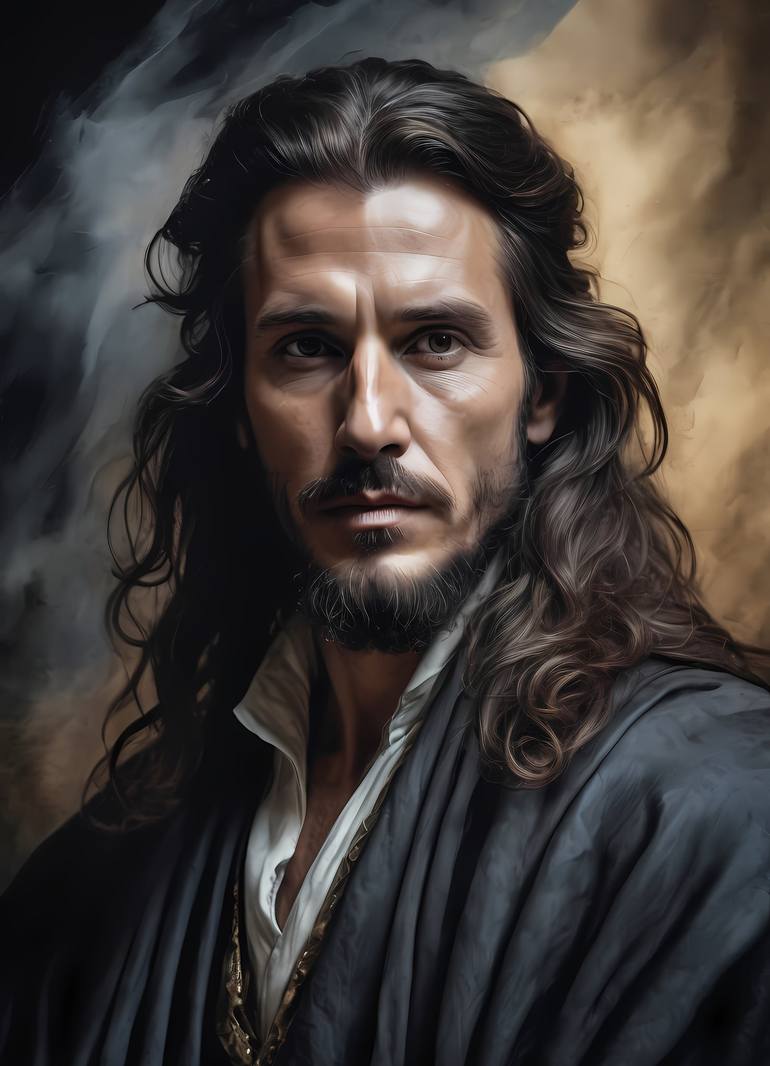 Find the perfect piece for your living space today. Made with museum-grade paper. Matte finish. In a grand and stately hall Hangs the portrait of a man A gaze so bold, it could enthrall In a classic painting, he stands With a regal air and noble mien His presence commands the room A timeless figu...