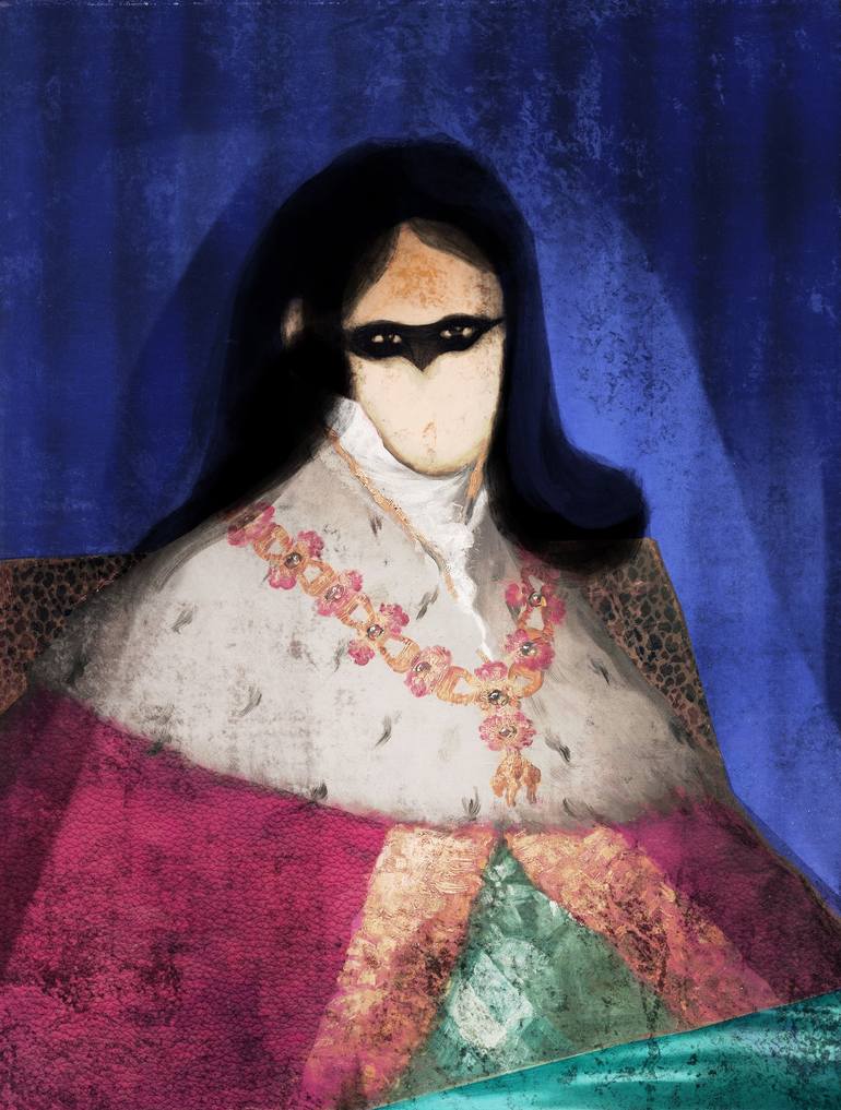 Digital eye mask dress Woman blue purple chair light clean minimal