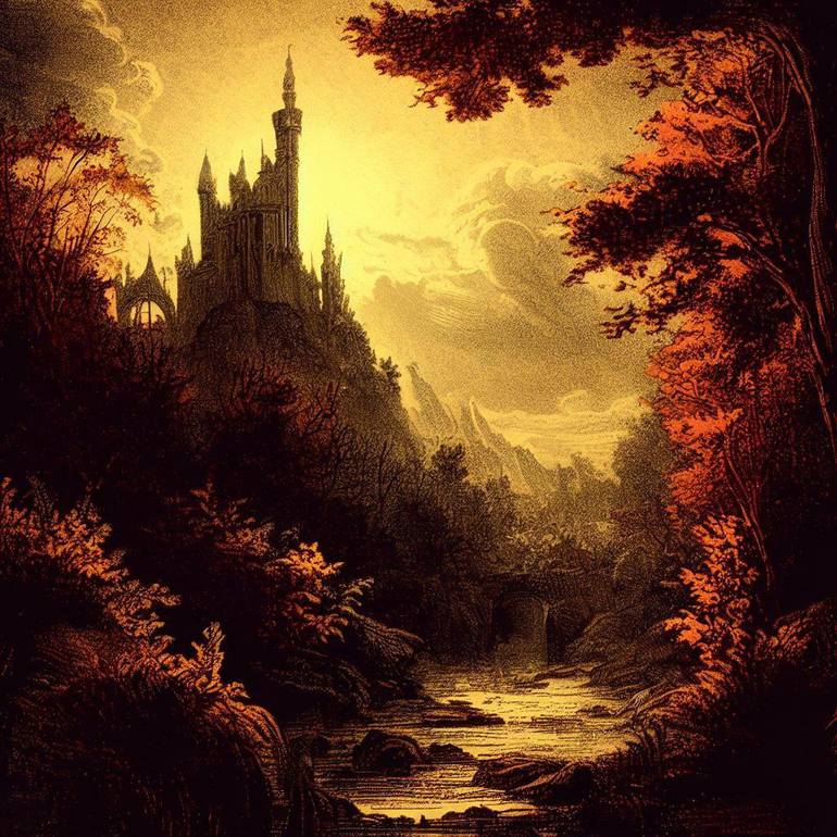 Imagine yourself as a young kid, you are at grandparents' house, or in a library, and by chance you find a very old book, like centuries old, so you open it and immediately gets fascinated by the pictures: they are gravures, in lithogravure, metallic engraving or woodcutting style, straight black and white or with fading colors because the paper is very aged, and even if you don't understand what the texts says, it doesn't matter because your imagination gives you the story behind those pictures, then you are swallowed into a journey of wonder and discovery, creating a dear memory from childhood. That's the feeling I'm trying to recreate with this collection. Witnessing the fast ascension of artificial intelligence, specially in the arts field, I started to play and experiment with different tools, and enjoyed so much some results that I decided to share them here. Some major influences are gravures, drawings and paintings by past centuries artists like Doré, Kittelsen, Dürer, Blake, Rackham, Escher, Friedrich, among others. I like to explore simple and universal themes mostly around nature and landscapes, with some darker touches, and also some medieval, fantasy and gothic themes, keeping a lithogravure / woodcutting / metallic engraving style in the artworks, generating nostalgic feelings and vintage vibes. All artworks have minor or major interventions by a photo editor. I'm brazilian, graphic designer for at least 25 years, but never tried to expand and expose any artistic creations until now.