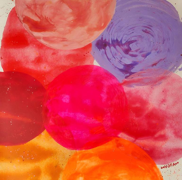 "Meditative Planets"is an enchanting original art print that features a kaleidoscope of rich hues—radiant reds, soft pinks, deep purples, warm oranges, earthy browns, striking magentas, and lively fuchsias—each mesmerizing circle represents a unique portal, inviting you to journey inward and explore...