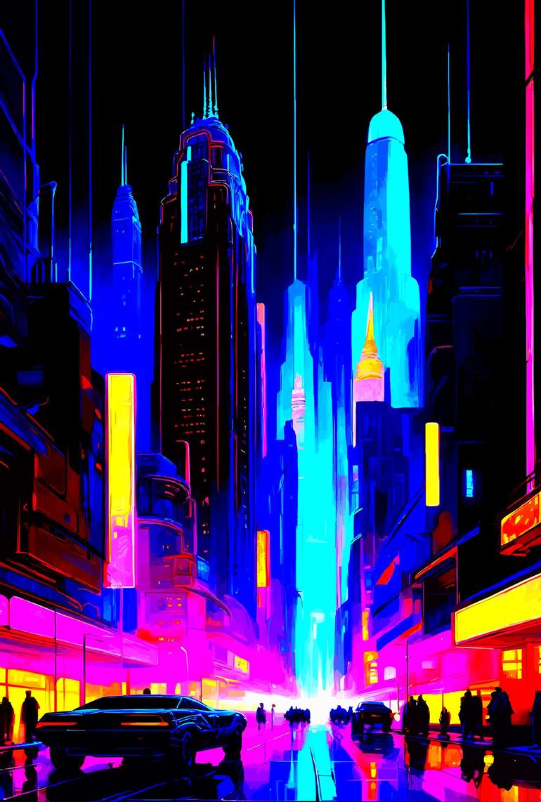 Title оf the Series: "Neon Dreams: Metropolis Nights in Art Nouveau". The "Neon Dreams: Metropolis Nights in Art Nouveau" series captures the mesmerizing essence of a night cityscape, where towering skyscrapers and streets come alive under vibrant neon lighting. Through a rich palette of blue, purpl...