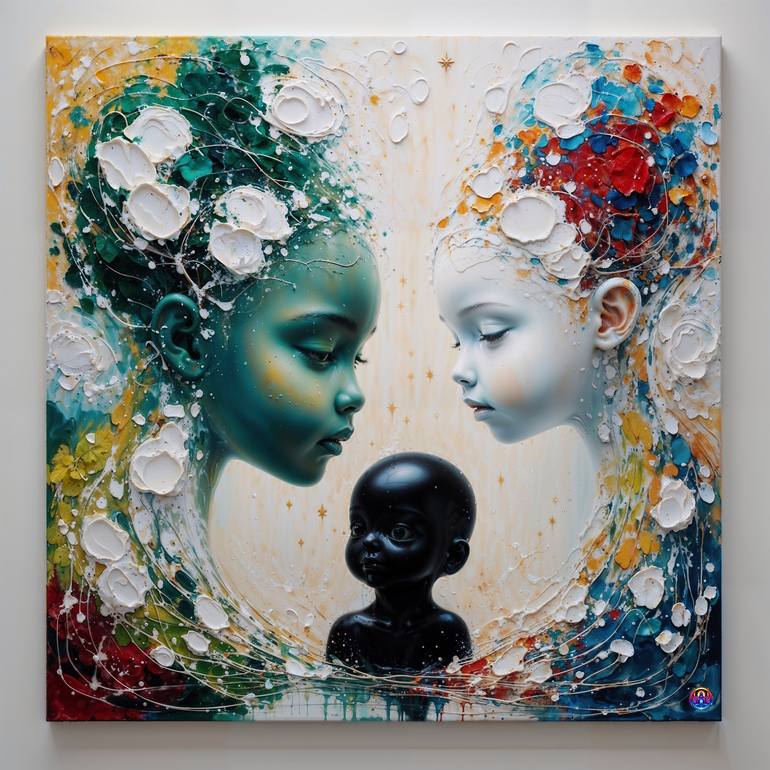 "Mindscapes" captures the delicate balance between the conscious and subconscious mind. The green figure represents the awakened conscious mind, full of life and awareness, while the white figure symbolizes the subconscious mind, gently drifting into deep sleep as the child grows. This artwork evoke...