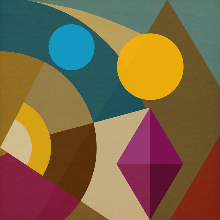 Mutt's Nuts Series - Making Shapes Collection* Art Deco inspired Art: Graphic Abstract Geometric Composition. "Life: Sun: Moon" Gallery Editions are hand-signed by the artist personally (on the front) and include a unique Certificate of Authenticity. Offered as a large 30x30 inch Monoprint so tha...