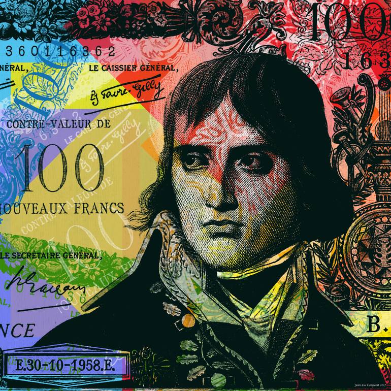 Napoleon Bonaparte detail 100 nouveaux francs bank note Pop Art Warhol style. Original: giclee on canvas hand signed/numbered and dated - 24" x 24" with 2" extra border - rolled / shipped in tube. Prints - photo paper, fine art paper or canvas signed and dated. Napoleon's death centennial is bein...