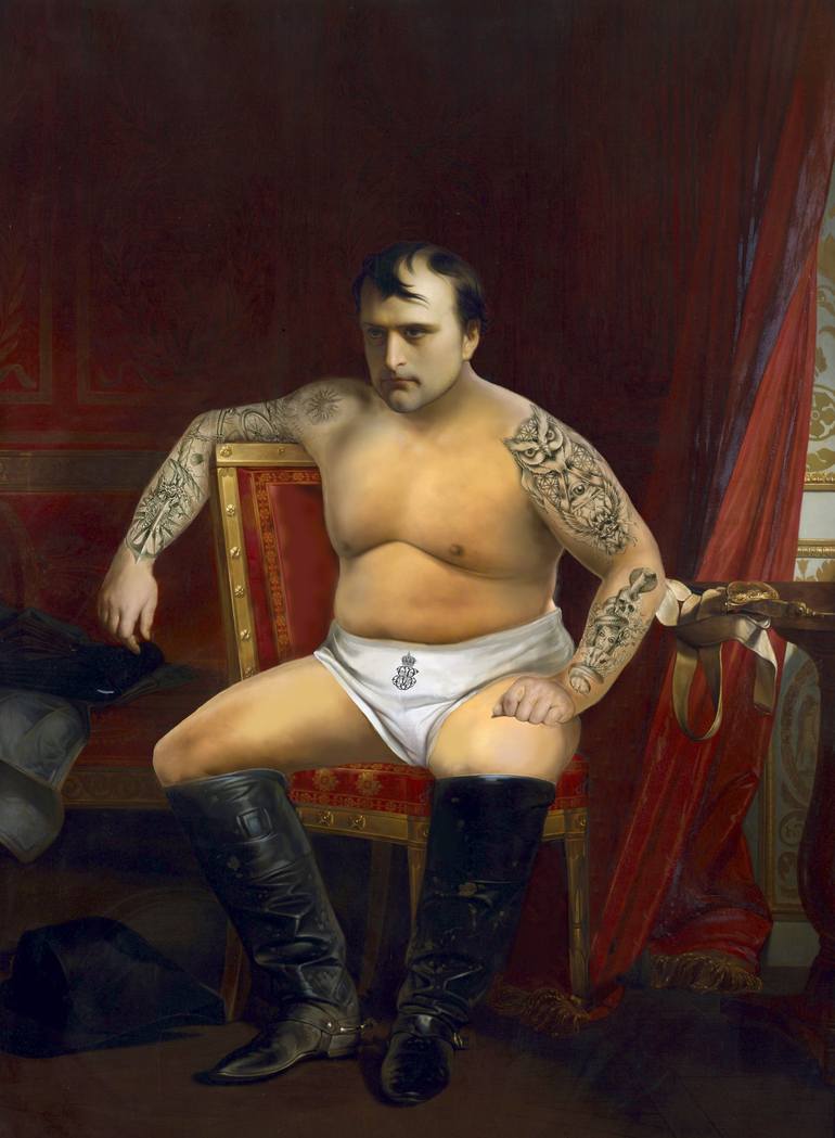 "Napoleon I at Fontainebleau 31 March 1814". digital painting in high resolution, I painted adding to the painting by the French artist Paul Delaroche the Napleden golog, with tattoo additions