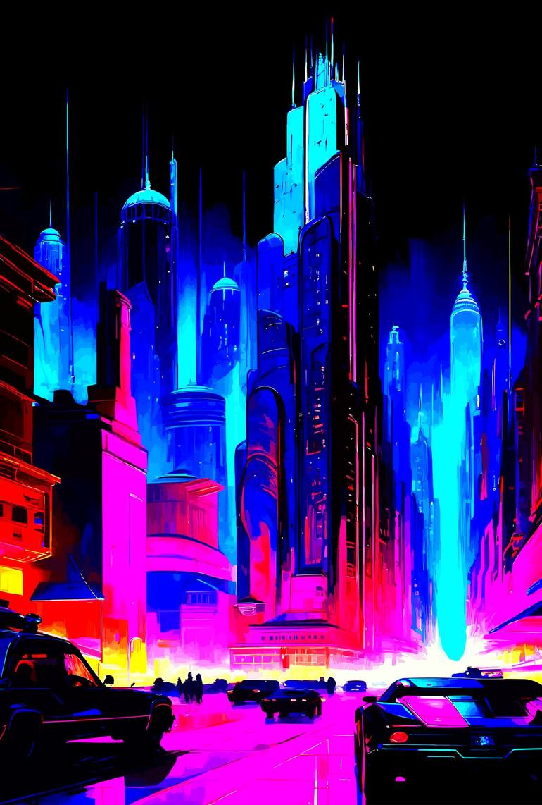 Title оf the Series: "Neon Dreams: Metropolis Nights in Art Nouveau". The "Neon Dreams: Metropolis Nights in Art Nouveau" series captures the mesmerizing essence of a night cityscape, where towering skyscrapers and streets come alive under vibrant neon lighting. Through a rich palette of blue, purpl...