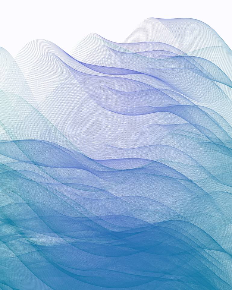 Ocean Waves is an algorithmically generated digital print comprised of intricately woven vectors. Through a process that incorporates both intentionality and chance, the work blends digital complexity with the spontaneous qualities characteristic of analogue. Undulating wave patterns, rendered in sh...