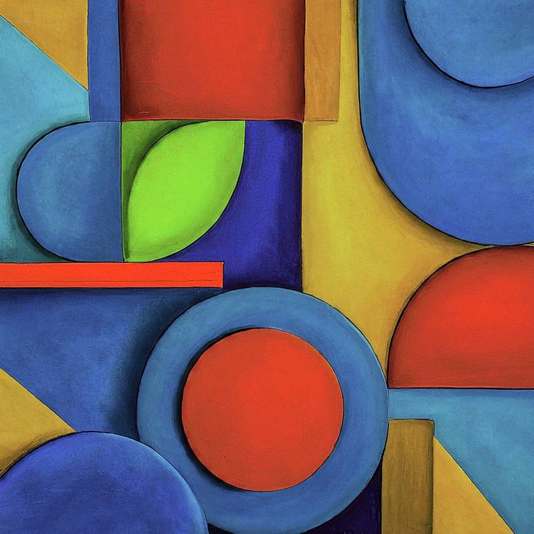 This vibrant abstract composition explores the interplay of swirling lines and bold circular forms. The energetic lines seem to dance across the canvas, their movement contained within the stabilizing circles. I aimed to capture a sense of both controlled and kinetic energy.