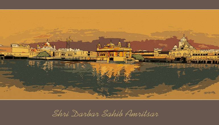 This fine art painting captures the ethereal beauty and spiritual resonance of Sri Harmandir Sahib, also known as the Golden Temple. Located in Amritsar, Punjab, India, this revered landmark is a sacred pilgrimage site for Sikhs around the world. The abstract and photorealistic styles blend seamless...